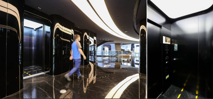 应用于丽泽SOHO中的日立双轿厢电梯,日立电梯为该项目提供了16台双轿厢