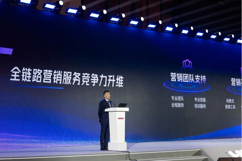日立电梯战略规划总部黄东文总经理,在大会上发布了日立智慧楼宇解决方案,围绕全场景产品矩阵构建、全链路营销服务支持两大维度,铸造日立电梯在智慧楼宇事业版图的竞争力,携手合作伙伴开启共同事业的增长新引擎,共拓千亿级楼宇市场。